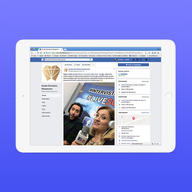 Ci occupiamo della gestione professionale della pagina facebook dello Studio, dove vengono programmati periodicamente post di intrattenimento, informazione e promozione delle principali terapie. Vai alla pagina..